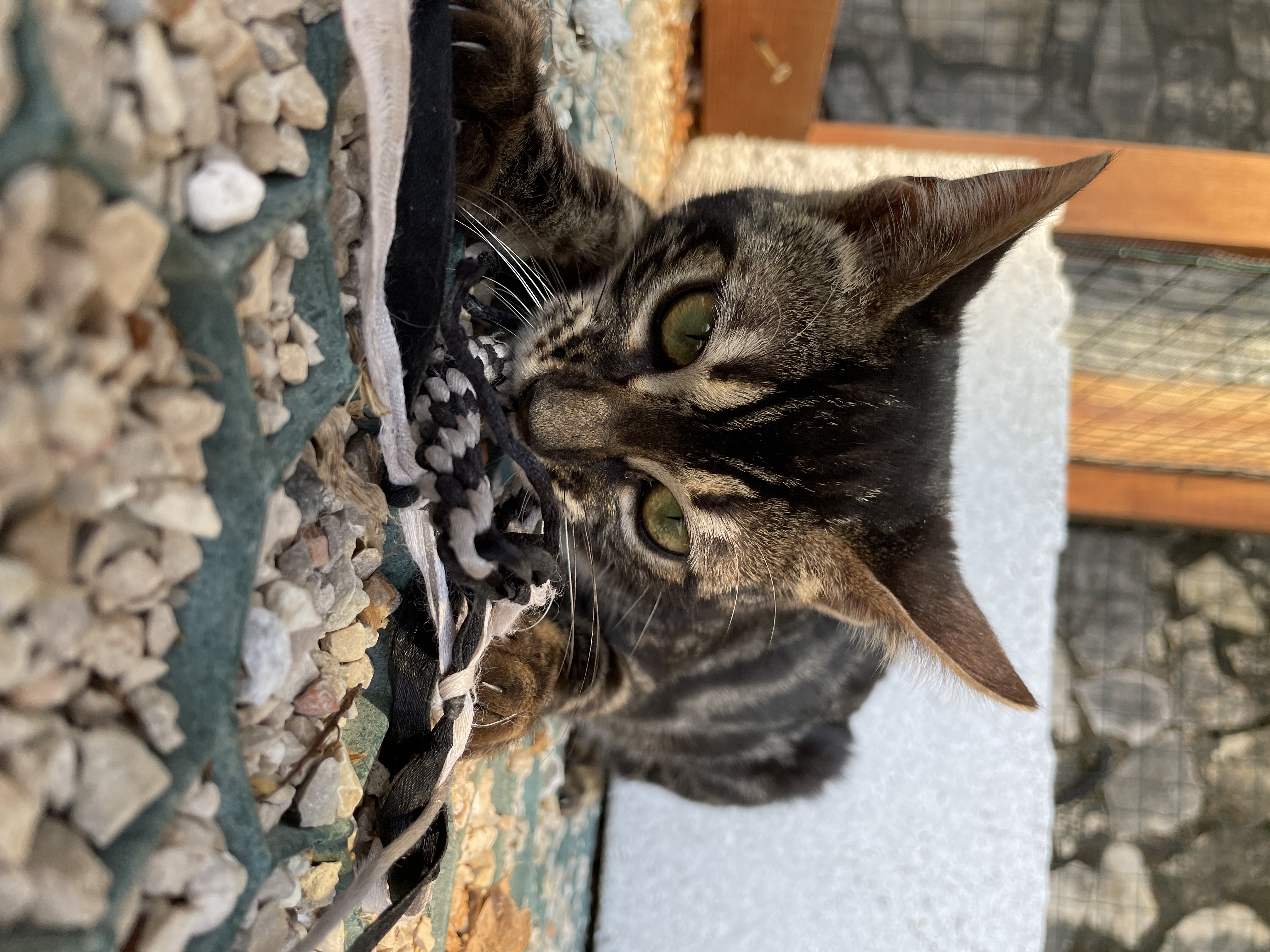 due femmine di Bengala dalla colorazione particolare. Entrambe definite "Brown spotted tabby" ma Noir ha dei forti contrasti"smoke" mentre la piccola Kitty è sul "Silver".